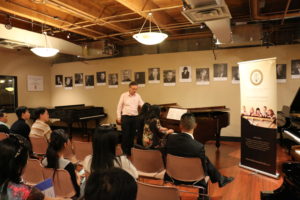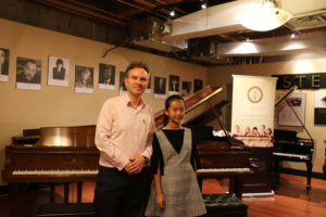 Our society could not agree more with this beautiful sentiment from Steinway Artist James Brawn. On Tuesday, November 8th, members of our Young Artist Club were givenĀ a private master class with James, a man who forged his own musical path of discovery and can trace his pedagogical lineage back to Beethoven, Chopin, Liszt and Clara Schumann. Phoebe, Bing Yi, Amy, Alize, Robbie, Paul and Daniel all performed beautiful classical works ranging from Mozart to Rachmaninoff. James provided thoughtful insight on each performance, coaching the students through the more difficult performance elements in each piece. During one session, James instructed the student to define the phrasing more prominently by putting “energy in the ends of your fingertips.” He later stressed the importance of playing in time by advising the students to “always use a metronome, whether you are a professional or a young student.”