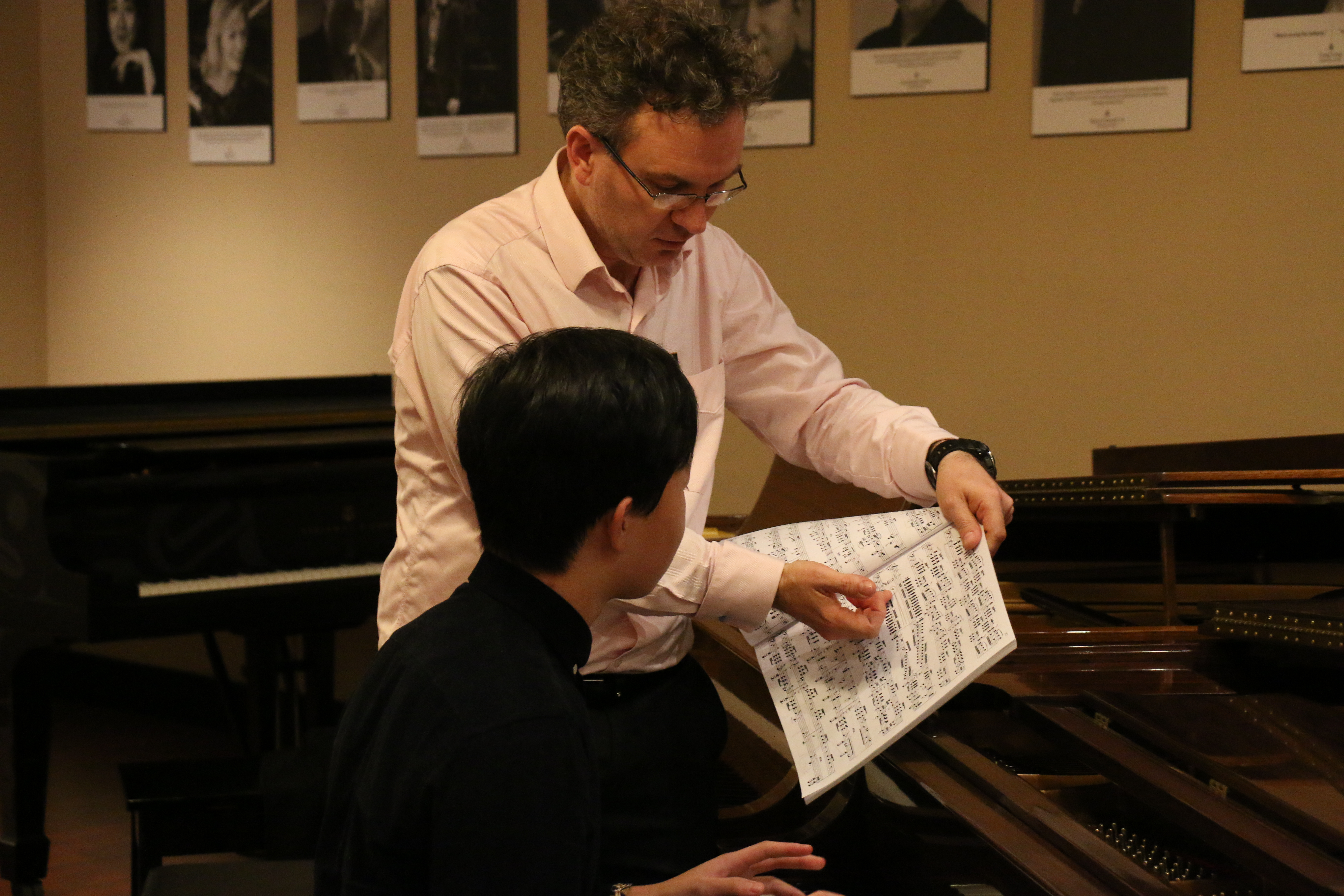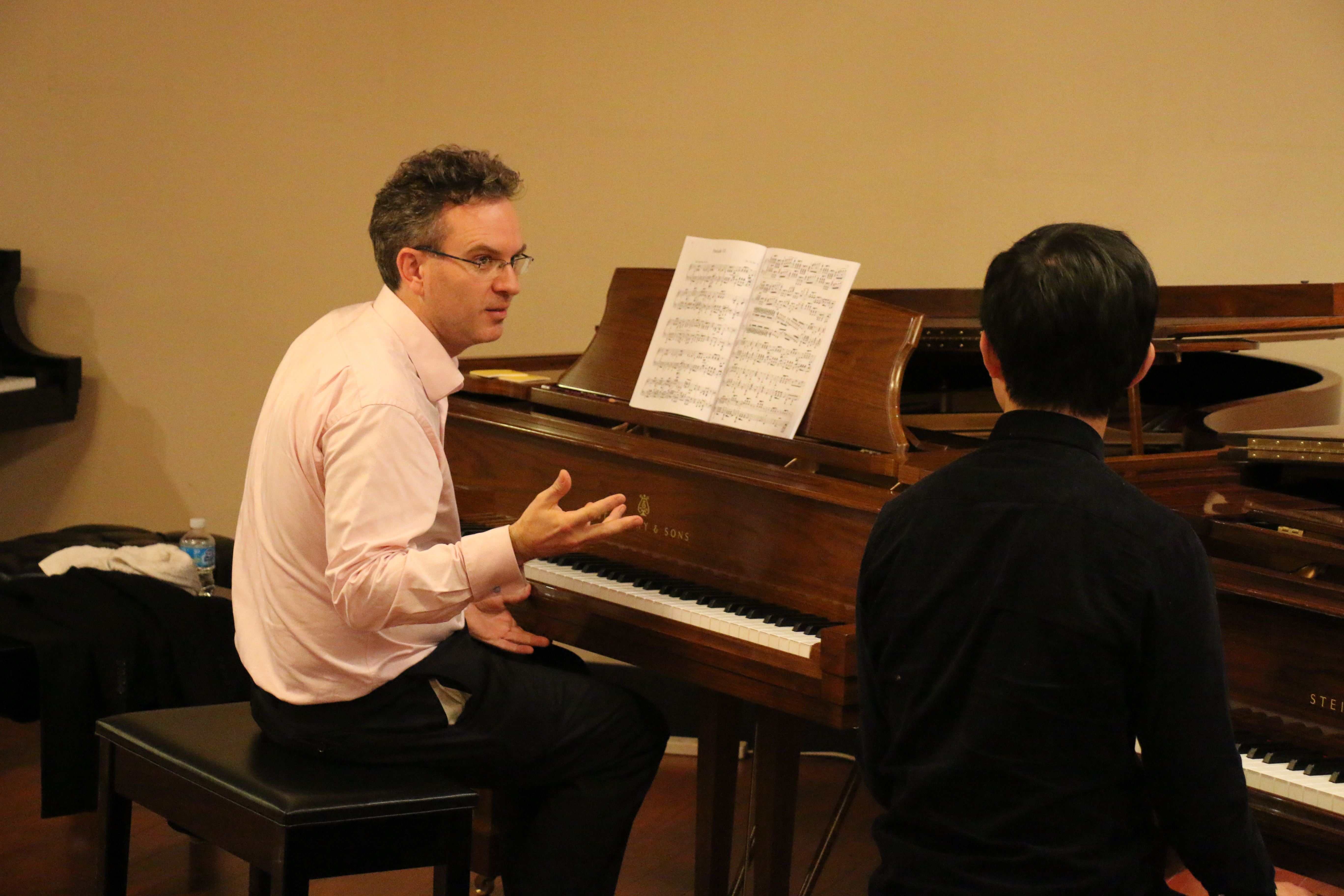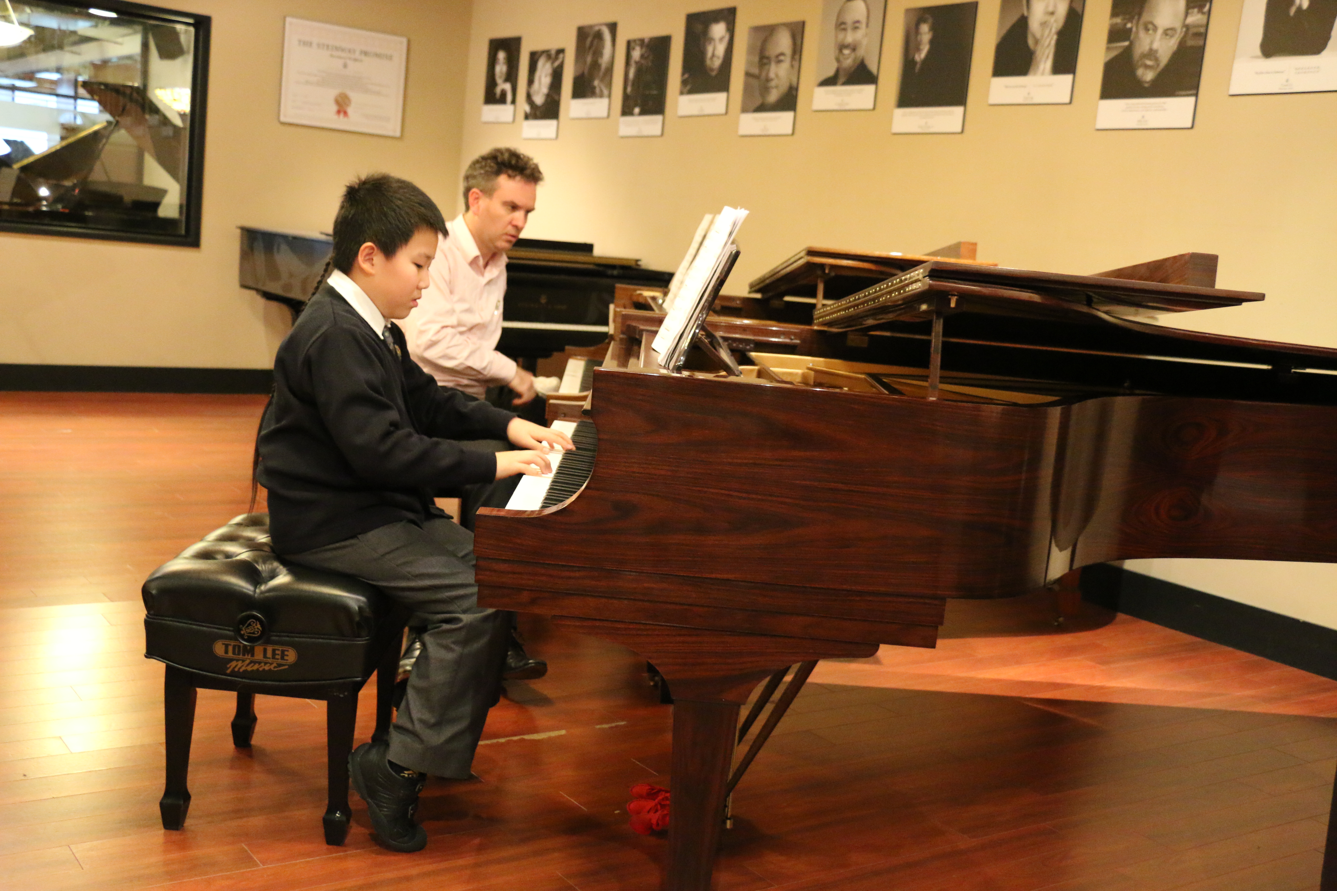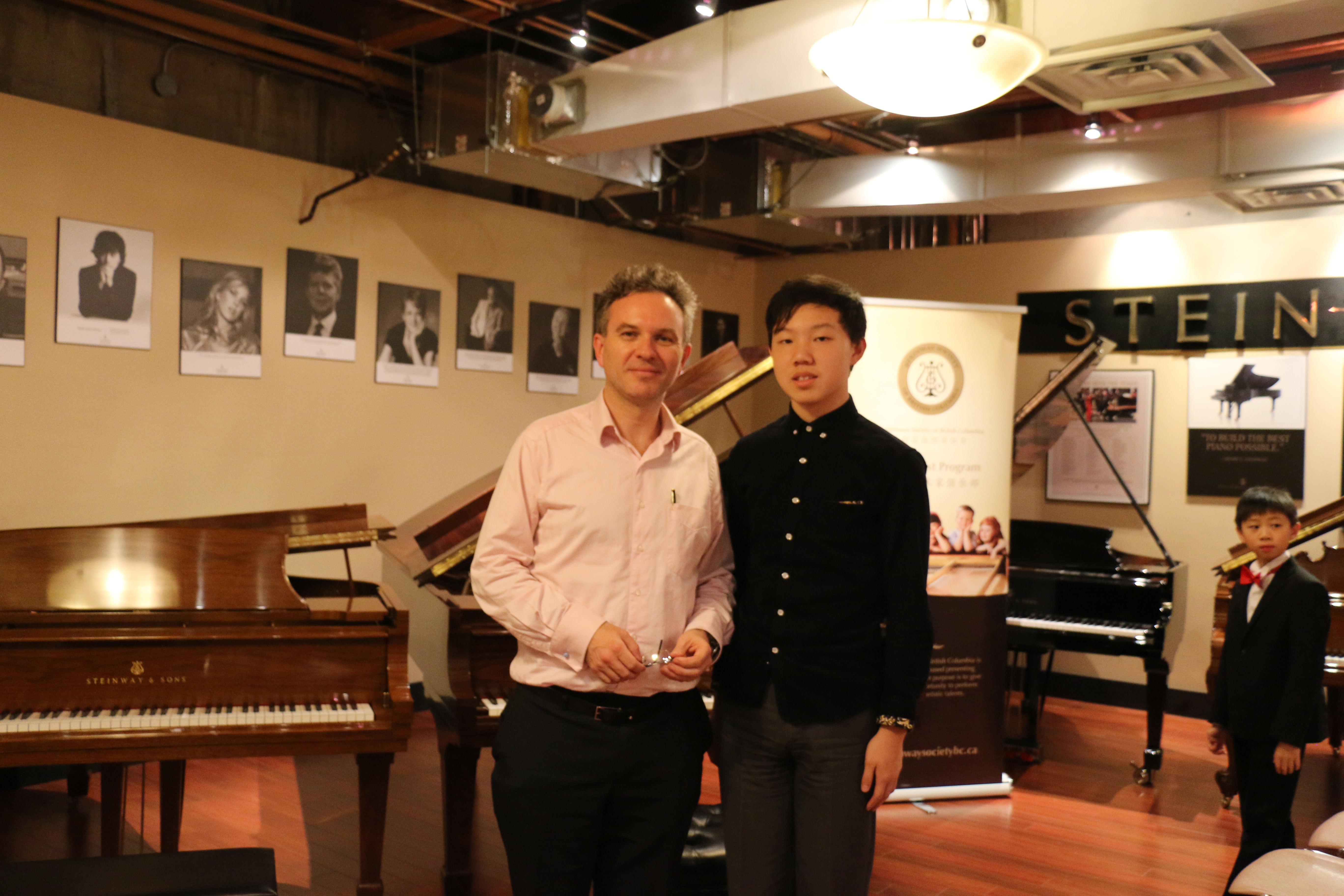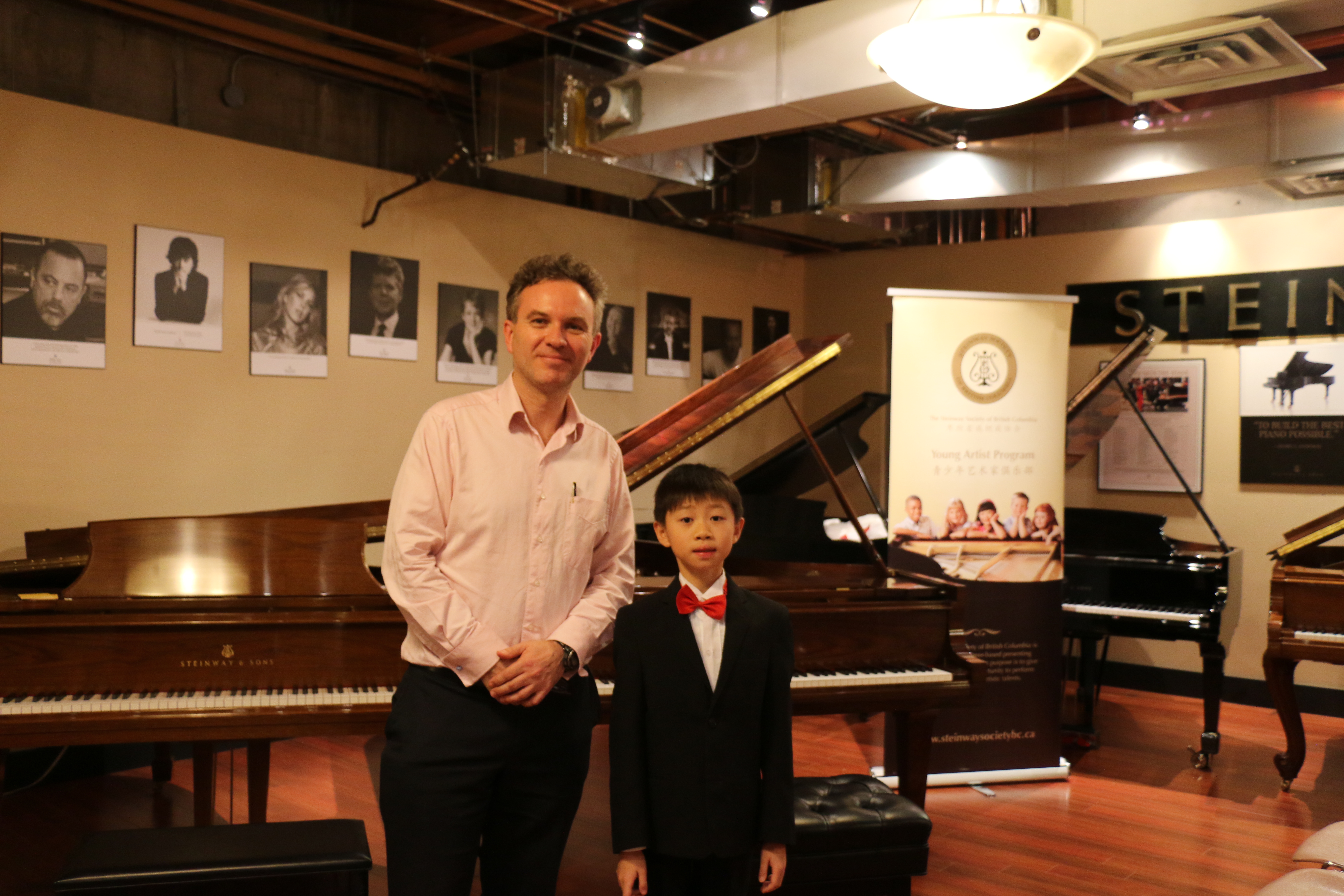 Our society could not agree more with this beautiful sentiment from Steinway Artist James Brawn. On Tuesday, November 8th, members of our Young Artist Club were givenĀ a private master class with James, a man who forged his own musical path of discovery and can trace his pedagogical lineage back to Beethoven, Chopin, Liszt and Clara Schumann. Phoebe, Bing Yi, Amy, Alize, Robbie, Paul and Daniel all performed beautiful classical works ranging from Mozart to Rachmaninoff. James provided thoughtful insight on each performance, coaching the students through the more difficult performance elements in each piece. During one session, James instructed the student to define the phrasing more prominently by putting “energy in the ends of your fingertips.” He later stressed the importance of playing in time by advising the students to “always use a metronome, whether you are a professional or a young student.”